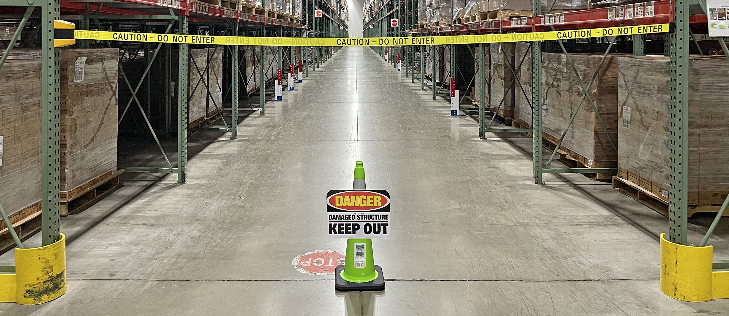 The moment pallet rack sustains critical damage a catastrophic collapse is a real possibility. A rack collapse can happen suddenly, without warning. In this event, the damaged rack becomes the first domino in a disaster that threatens the entire facility, and the lives of workers in it. Critical damage is a unique and urgent threat that requires a unique and urgent response.